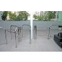 ROUND J is the indoor and outdoor half-height turnstile with stainless steel handles.