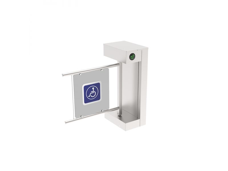 Entry level wing gate turnstile with a common body shape, suitable for passages of VIP’s and passages with wheelchair, trolley, push chair.
