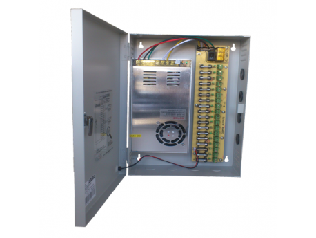 18 kanala, stabilisan, osigurač za svaki kanal, ormarić, od 1.-10. kanala 2A , od 11.-18.kanala 500mA, dimenzije: v/š/d:317x222x80mm
