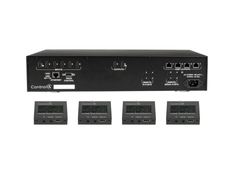 This model is capable of distributing six HDMI 4K UHD sources to four zones, utilizing HDBaseT Class B technology and two additional zones via HDMI outputs. Fast switching times are achieved thanks to the Control4 advanced EDID management system and EZ Calibration. Zone Lock technology ensures home theater and media rooms are able to take full advantage of 4K, 3D, and surround sound audio.